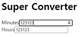 <input value={minutes} id="hours" placeholder="Hours" type="number" />