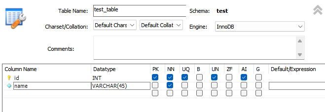 먼저 mysql 에서 스키마와 테이블을 만들어준다.