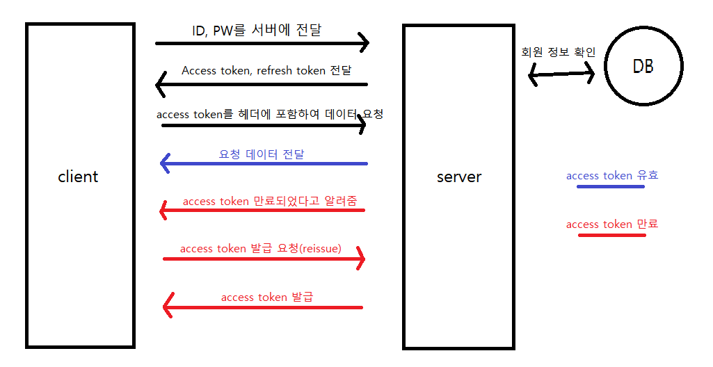 이후 server에서 access token 만료 여부를 확인하고