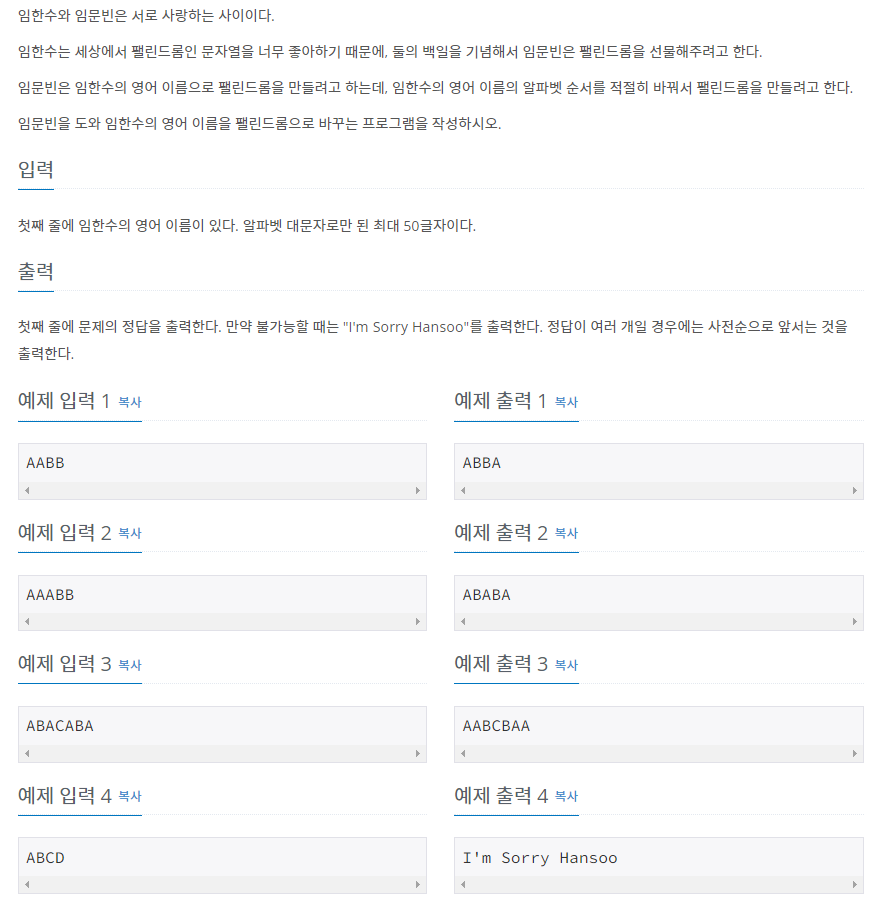 1. I'm Sorry Hansoo가 출력될 조건 : 문자의 개수가 홀수인 문자가 두 개 이상일 경우